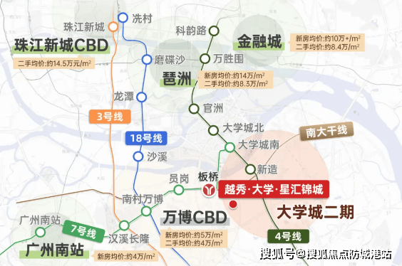 番禺越秀星汇锦城位于番禺区南村镇兴业大道与南村东线路交汇处,地处广州“南拓”战略核心区,衔接万博CBD与广州南站商务区。根据穗规划资源函〔2024〕82号文,番禺区将重点打造“南村-新造科技创新带”,未来5年计划投入超2000亿元推进广州人工智能与数字经济试验区(大学城片区)、广汽智能网联新能源汽车产业园建设。项目距离地铁7号线板桥站仅800米,相比周边竞品如越秀和樾府(距地铁1.5公里)、珠江铂世湾(距地铁2公里),通勤效率提升显著。规划详情可咨询销售顾问:400-622-0070。