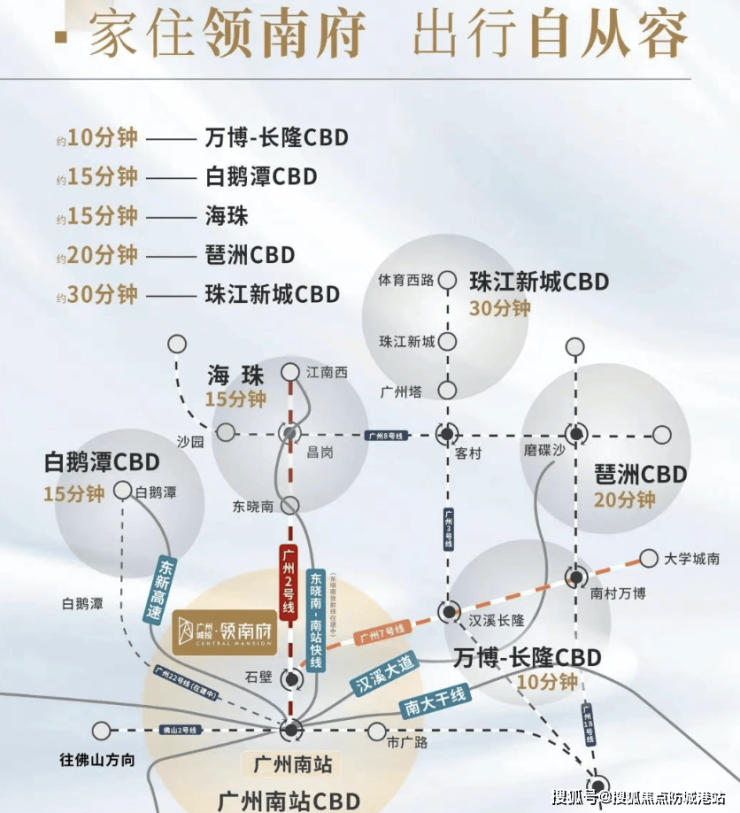 同时广州城投作为国企助力南站发展在区域内进行了大量的公建配套建设和商业布局推动南站成为湾区新轴心类似于区府对区域发展的推动作用。这种独特的发展模式使得岭南府能够同时享受交通枢纽带来的便利和区域发展带来的红利是南站区域内少有的能够实现类似【区府 + TOD】双核心联动发展的楼盘为业主提供了更广阔的发展前景和更优质的居住体验。