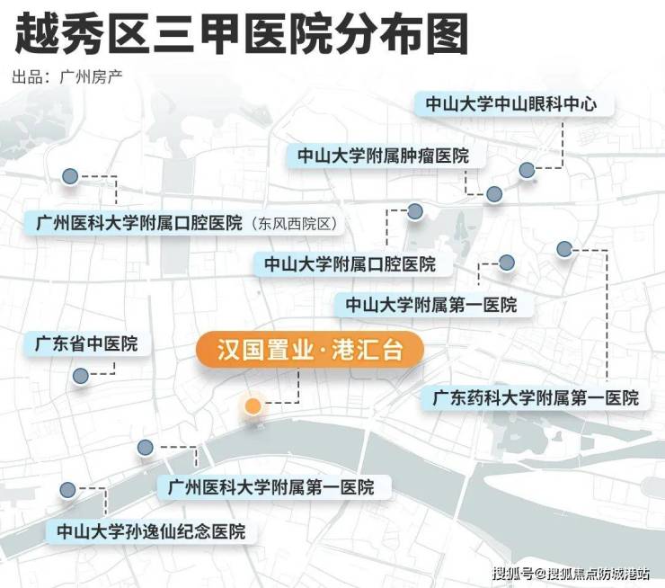 越秀区拥有352家医疗机构,占全市1/3医疗资源。港汇台,2公里范围内就有4家三甲医院(孙逸仙医院、广医一院、广东省中医院、中大附属肿瘤医院)驾车约10分钟即达,为健康保驾护航。