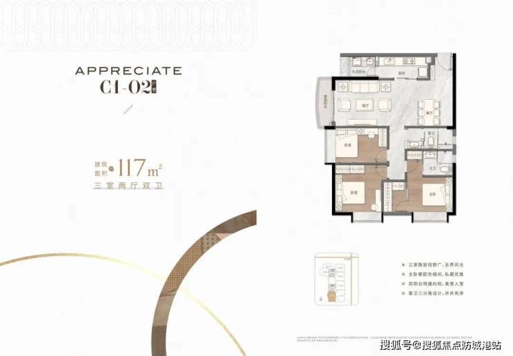 顶尖设计团队,匠造建面约69-144m²臻美二至四房,户户双阳台,LDK一体设计,东南向望江赏景,科学布局动静分区,双入户大堂,配备星级五层地库,造就理想生活。