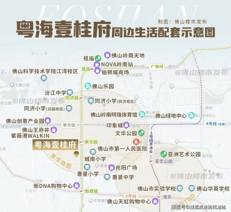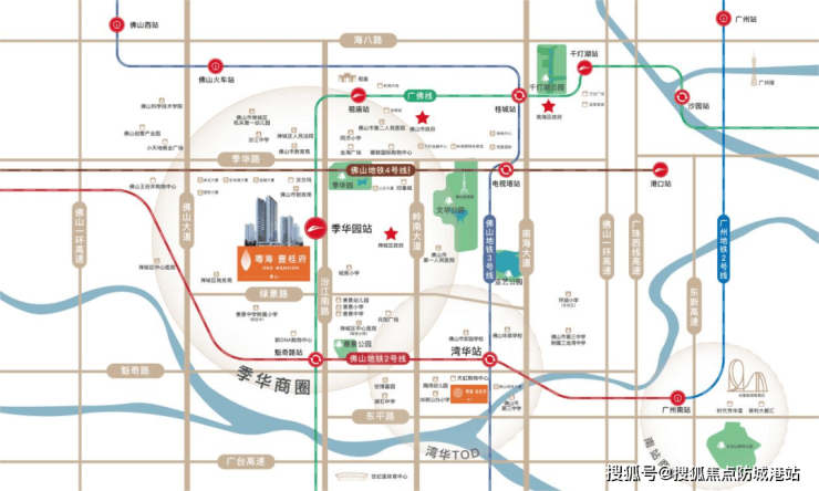 粤海·壹桂府所处位置交通优势明显,毗邻佛山大道、季华五路、汾江路等城市主干道,形成便捷的交通网络。同时,执掌3地铁交通,距广佛线季华园站仅约200米 ,坐拥2号线以及在建中的4号线。借助这样的交通布局,2站可达祖庙,8站能到千灯湖,10站可至广州南,大大缩短了与城市各重要区域的时空距离,无论是日常通勤还是商务出行、休闲旅游,都极为便利,加强了项目与周边区域的经济、文化联系,提升了项目的吸引力和竞争力。
