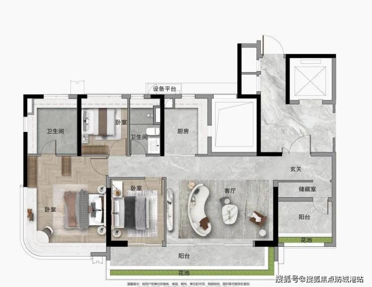 建面约108-110m²创意空间:片区罕见稀缺小户型,带入户花园,全屋采光面约达12米,适合首次购房者。