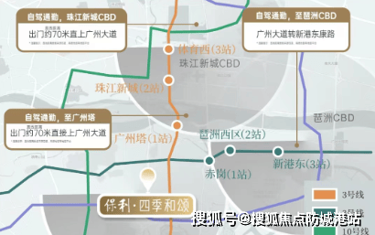 保利四季和颂周边四条地铁线环绕,包括3号线、8号线、10号线和11号线,两两垂直交叉,形成了一个长方形的包围圈。从小区出发,步行可达多个地铁站,轻松实现1站到广州塔、2站至珠江新城琶洲西区、3站到体育西,4站抵达昌岗商圈。无论是自驾还是公共交通出行,都极为方便快捷。