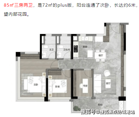 珠江·天河都荟提供多种户型选择,面积从72㎡到152㎡不等,满足不同家庭结构的需求。其中,72㎡户型做到三房两卫,四开间全南向,玄关位置设有收纳柜,主卧为套房设计,带有L型超大飘窗;152㎡户型则采用双套房设计,专梯入户,层高达3.3米,客厅开间约6米,搭配9米长大阳台,空间尺度豪华。所有户型均注重采光和通风,确保居住的舒适度。