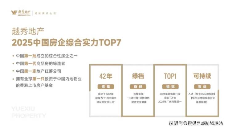 越秀地产成立于1983年,是广州市属龙头国企,2023年市值突破千亿,连续多年稳居“中国房地产百强企业TOP20”。深耕广州42载,成功开发了二沙岛文立方、越秀·和樾府、琶洲南TOD等10个标杆项目,累计交付面积超3000万平方米,服务业主超50万户。