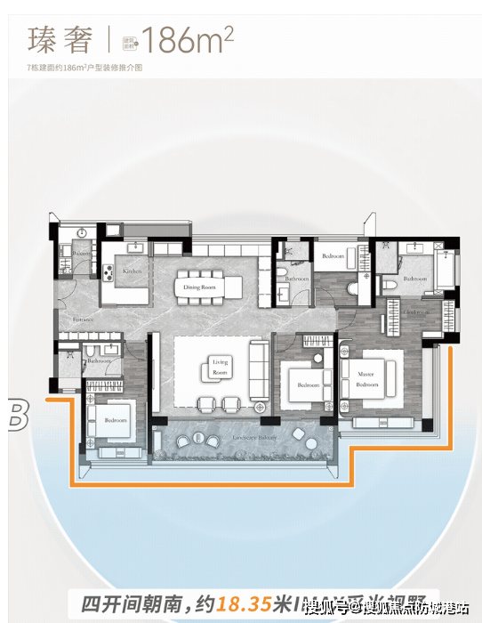 户型设计:110-186㎡三四房,超 100% 使用率赋能生活