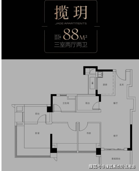 高使用率:依托新规优势,通过优化飘窗、阳台空间,户型使用率远超传统住宅,88㎡三房实际使用面积接近 90㎡,空间布局合理,几乎无浪费面积,满足三口之家日常居住需求。