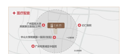 医疗配套是项目宜居性的重要支撑,黄埔润府周边 2 公里内聚集 2 所三甲医院与 3 所综合医院,为业主健康保驾护航:
