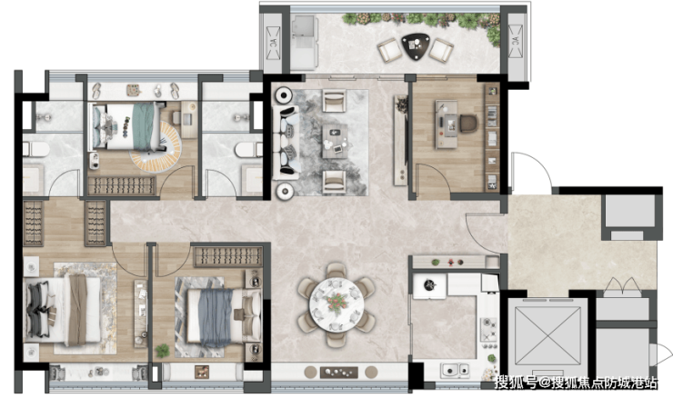 168平方米大四房则是项目的主力改善户型,面向人口较多的品质家庭。超宽独立电梯厅进一步增强私密性,7米多的南向景观阳台与北向生活阳台形成双面景观,一边俯瞰社区中央园林,一边眺望周边自然盛景;四开间朝南的布局让每个房间都能获得充足光照,搭配3.1米层高与双入户大堂,居住舒适度直接拉满。据悉,该户型开放实景创意空间后,凭借双向望山的阔景视野,成为改善族追捧的爆款,总价800多万就能入手山景大四房,性价比优势显著。
