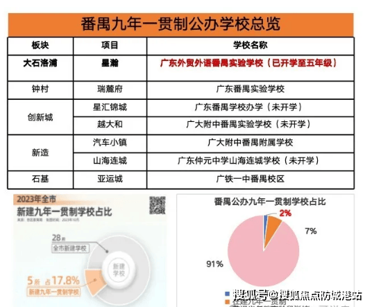 九年一贯制广外附校与项目北区住宅相邻,下楼即达学校门口,步行时间不超过 5 分钟。学校共提供 1350 个小学学位和 750 个中学学位,星瀚 TOD 总户数为 4378 户,小学学位与户数配比为 1:3.24,高于 1:4 的平均标准,充分保障了业主孩子的入学权益。