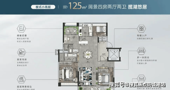超高层96㎡三房、125㎡/141㎡四房:高层设计,视野开阔,尽享城市美景。