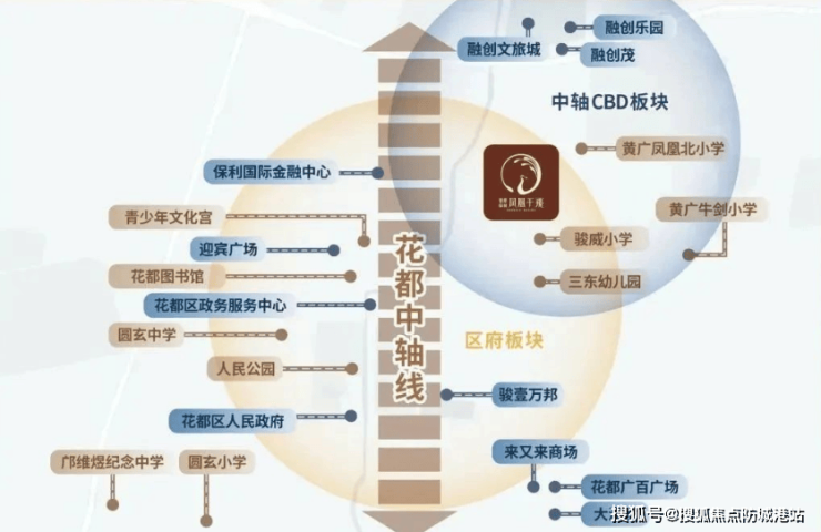凤凰于飛坐落于花都区府CBD板块与中轴CBD板块交汇处,这里不仅是花都的传统富人区,也是未来绿色金融CBD的核心地带。该区域集聚了花都最好的商圈、老牌名校、医疗资源及市政资源,同时享受着中轴CBD的发展红利。特别值得一提的是,三东村百亿旧改计划将为这一地区带来新的发展机遇,包括绿色产业、航空文旅和冰雪产业等新兴产业的发展,进一步提升该区域的价值和发展潜力。