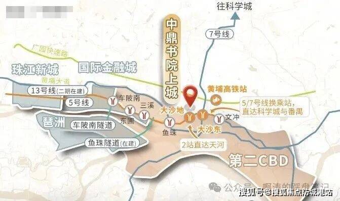 在广州买房,交通永远是第一考量。对于在大沙地板块的中鼎书院上城珺翎府来说,其交通优势可以用“碾压级”来形容。