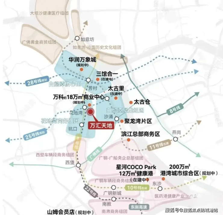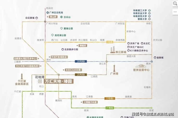 项目位于荔湾花地湾板块,直线距离白鹅潭CBD仅1.5公里,享受“珠江新城2.0”规划红利。根据《广州市轨道交通线网规划(2021-2035)》,未来5年将新增地铁11号线、22号线、28号线,形成“3地铁+2有轨电车”立体网络。