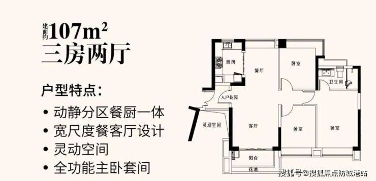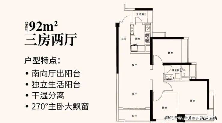 三房户型:采光充足,南向大阳台直连客厅,通风顺畅,适合刚需及小家庭。