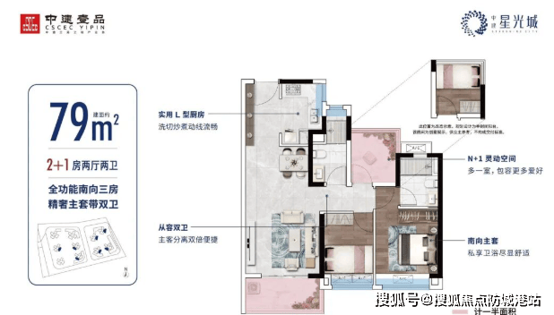 建面约79㎡:主套双卫3房,东南向瞰园林,低总价享受高品质生活。