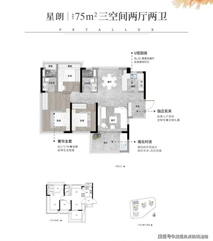 主力户型包括:建面75㎡三房两厅两卫,总价约200-210万元,户型方正通透,独立玄关可改造为储藏室,U型厨房操作空间充足,主卧带独立卫浴和270°环幕视野;建面94㎡四房两厅两卫(主力户型),售价约237-240万元,采用LDKG一体化设计,6.4米超大阳台兼顾休闲与晾晒,额外功能房可作书房或儿童房;建面108㎡四房两厅两卫,定价约280-304万元,南向面宽达15米,搭配7.2米阔景阳台,南北对流,主卧配备独立衣帽间和卫浴,舒适度拉满。装修方面采用知名品牌建材,保障居住品质与耐用性。