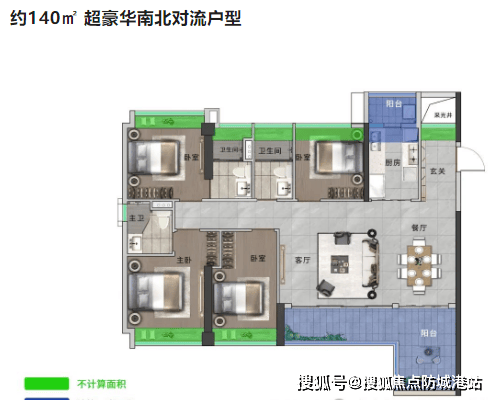 约140㎡ 超豪华南北对流户型:宽敞舒适,适合追求高品质生活的家庭。