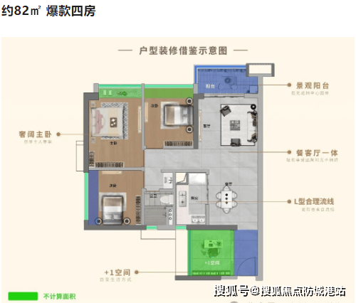 约82㎡ 爆款四房:功能分区明确,满足多代同堂需求。