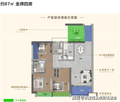 约87㎡ 金牌四房:南北通透,采光通风俱佳。