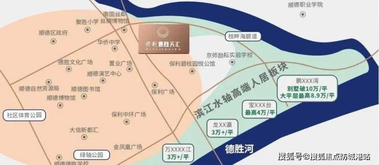 保利·德胜天汇位于区府芯德胜新城,这里是顺德的经济、政治、文化中心。项目屹立于金凤凰中轴之上,享有“两心三馆”(顺德图书馆、顺德科技馆、顺德博物馆、顺德演艺中心、德胜体育中心)等地标建筑资源,以及顺峰山的自然景观。这样的核心位置使得保利·德胜天汇成为了城市发展的超级名片。