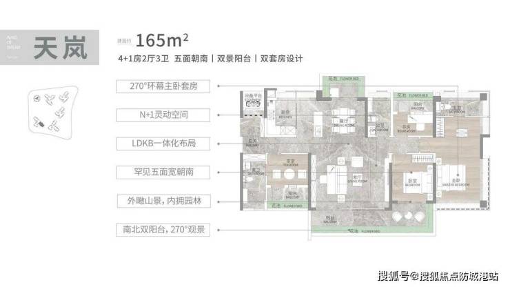 项目主打大尺度、高得房率的户型设计,所有户型均采用全景落地窗设计,确保充足的采光。特别是建面108平至165平的户型,不仅四开间朝南,而且部分户型还配置了南北双阳台,实现了室内外景观的最大化利用。