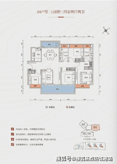 海逸文汇轩采用新中式建筑风格,融合岭南文化元素与现代工艺,整体风貌典雅大气。社区规划仅4栋楼宇,共405席住宅,采用一字楼布局,南北朝向无遮挡,确保每户都能享受充足的采光与开阔视野。户型主推建面约85-128㎡的三至四房精装产品,空间方正实用,功能分区合理,满足不同家庭结构的居住需求。架空层还设有亲子游乐区、泛会所、荧光跑道等多元配套,提升社区生活品质。