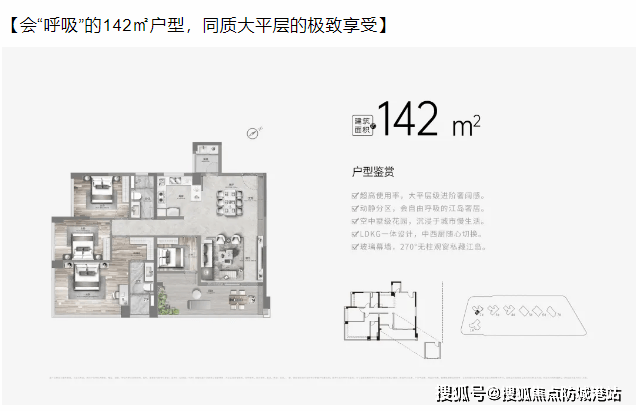 项目最大特色之一是所有户型都设计有270°转角巨幕飘窗,无论是142㎡还是227㎡的大户型,都能享受到开阔的江景与湿地公园景观。每一扇窗都引入自然光,最大化采光效果,让您的家充满温暖和舒适。