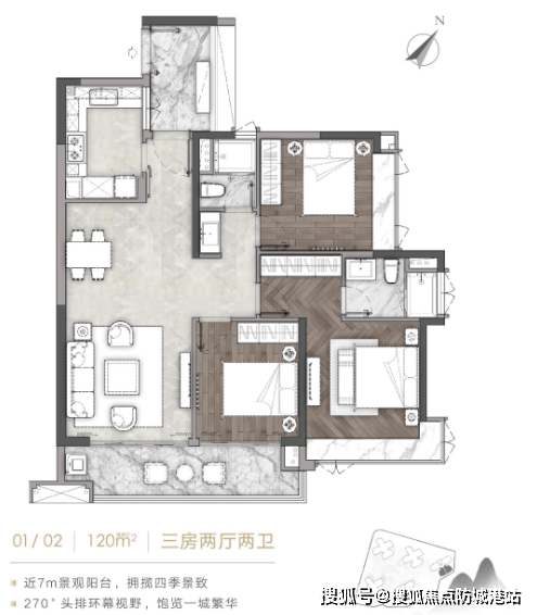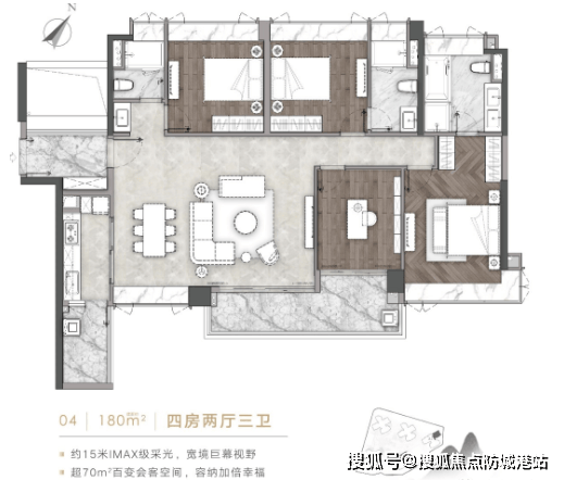 户型设计以 “山景最大化 + 空间舒适度” 为核心,首推 A 组团建面约 120-190㎡三至四房,覆盖刚需改善与高端改善需求。建面 120㎡三房两厅两卫,布局方正,东南向望山,客厅与卧室搭配观景飘窗,将白云山景引入室内,满足三口之家居住需求;140㎡3+1 房两厅两卫,灵动空间设计,可拓展为四房,适配二胎家庭,多开间朝南,采光与视野俱佳;180-190㎡四房两厅三卫,大面宽设计,部分户型配备宽景阳台与豪华主套,主卧带独立卫浴与衣帽间,满足三代同堂或高端改善家庭对空间与品质的追求,且所有户型均直面白云山,实现 “推窗见山” 的居住体验。装修采用富力集团高端标准,精选国际知名品牌,融入先进智能化设计,保障居住安全与便捷。