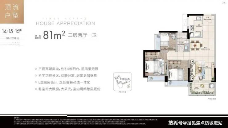 88㎡三房两卫:总价199万起,南向三开间望园林,北向瞰山,L型厨房,全屋飘窗。