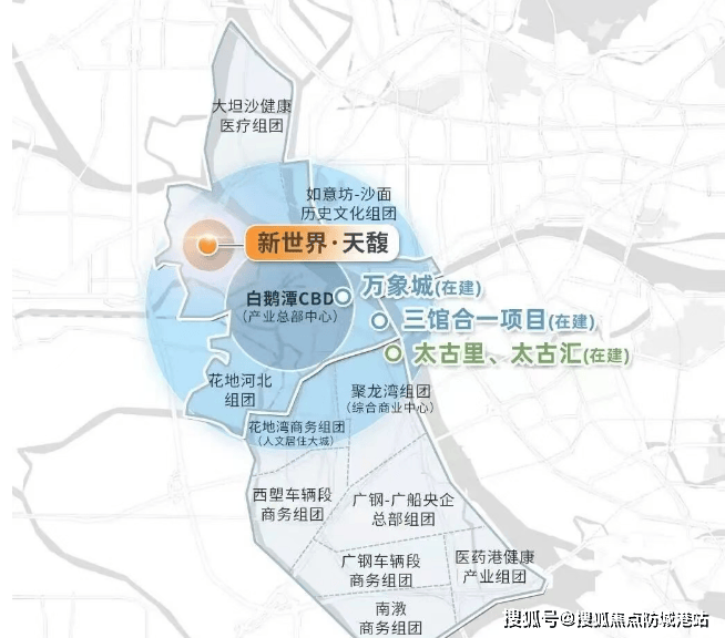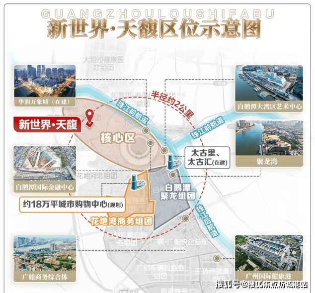 优越的地理位置:临近白鹅潭CBD,周围有多个高端商业体和文化地标。