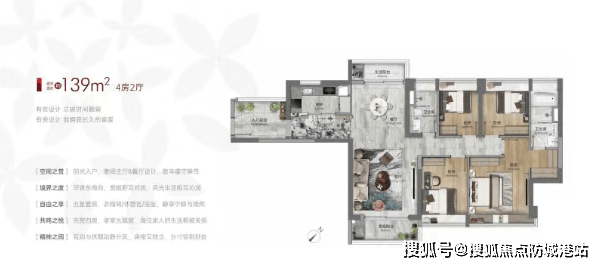新世界·天馥采用了半围合式布局,共有6栋楼,每栋楼采用45度“风车”户型设计,使得大部分主要室内空间朝南向排布,尤其是卧室空间几乎做到了100%朝南。目前主要在售的户型面积范围为70-140平方米,适合不同家庭结构的需求。