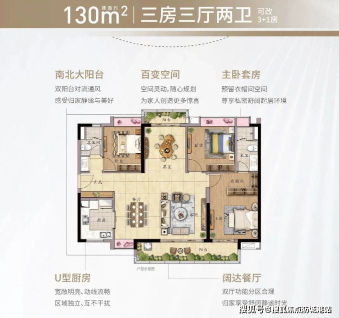120-130平方米三房三厅两卫(可改四房两厅两卫):宽敞明亮,适合三代同堂或有更多居住需求的家庭。