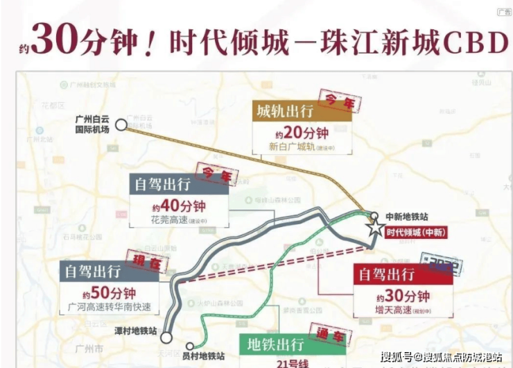 交通配套:紧邻地铁21号线中新站,接驳花莞高速(约800米),规划中的增天高速
