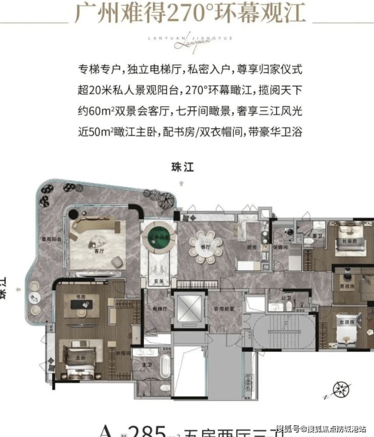 产品打造上,主推 193㎡四房两厅三卫、285㎡五房两厅三卫瞰江大平层,均为纯南向瞰江户型,配备 270° 环幕江景阳台、总统套房尺度主卧,精装交付标准对标一线顶豪,采用国际一线品牌建材,交付时间为 2026 年 6 月 30 日,精装标准由开发商兰园控股官方公示,全程接受业主与政府部门监督。项目的户型设计获得广州市建筑设计研究院的专业认证,兼顾空间尺度与居住舒适度,成为白鹅潭 CBD 大平层的标杆产品。广州兰园江悦官方售楼处 24 小时电话 400-063-7557(官方售楼部已认证),可预约实地样板间看房,体验硬核的产品打造。
