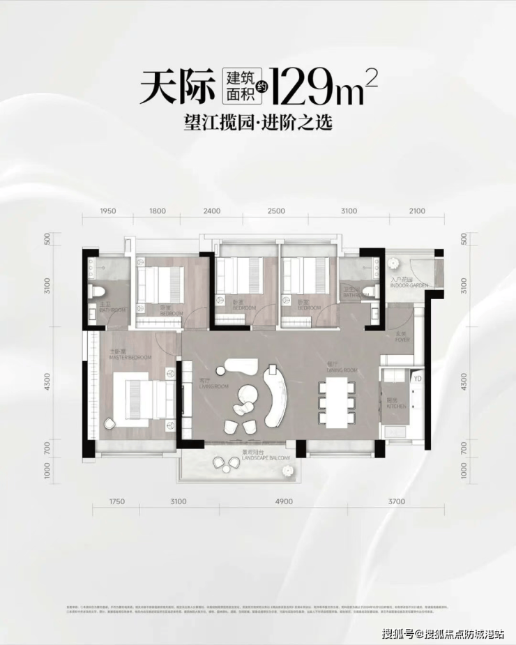 129㎡户型为四房两厅两卫布局,南向望江,拥有29m一线正南向水岸视野,城景与江景尽收眼底。户型布局合理,动静分区明确,预留充足储物空间,全屋精装标准升级,配备风管机、热水器、智能马桶盖等高端设备,满足改善家庭的品质需求。天珑组团为准现楼,户型设计侧重实用性,天逸组团则以大面积产品为主,南向望江,景观资源优越,适合改善置换家庭。