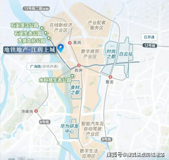 项目坐落于白云区湾区新岸板块核心,这里以科技创新为主导,正全力打造滨江高质量发展示范带,华为研发中心已投用,带动百度、安恒等科技企业入驻形成产业集群,区域价值持续攀升。交通配套堪称黄金配置,地铁13号线二期凰岗站与社区无缝衔接,步行至已开通的12号线西洲换乘站仅约800米,两条地铁线如同社区专属交通管家,未来更将建成地下通道直达珠江新城。