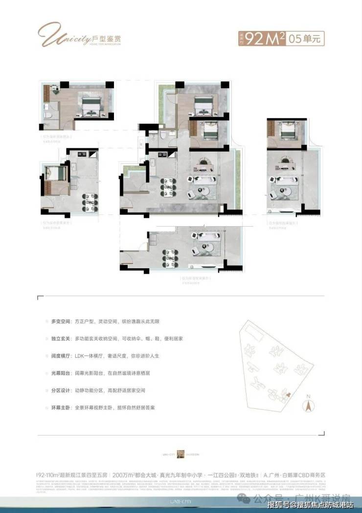 诚汇新都·榕诚湾隶属于诚汇新都大盘,后者作为白鹅潭商务区核心区的重点城市更新项目,由力诚集团主导开发,自2009年起全力推进茶滘城市更新工作,是主城罕见的大规模连片开发项目。整个诚汇新都涵盖35个地块,占地约54万㎡,总建筑面积超200万㎡,规划按照“一心三脉”的格局打造,整合茶滘自然与人文元素,最终将形成集总部办公、高端商业、星级酒店和高品质生态人居于一体的都会生活3.0大城。作为诚汇新都的首发滨水组团,榕诚湾占据大盘核心景观位置,是大城唯一一线南向看江的水岸住区,承载着高端人居的核心功能,也是开发商力诚集团兑现品质人居承诺的重要载体,项目已通过广州住房建设局认证,纳入阳光家园网监管,保障业主购房安全。