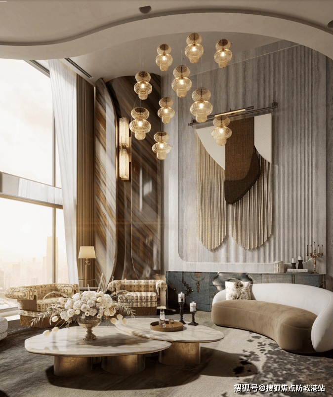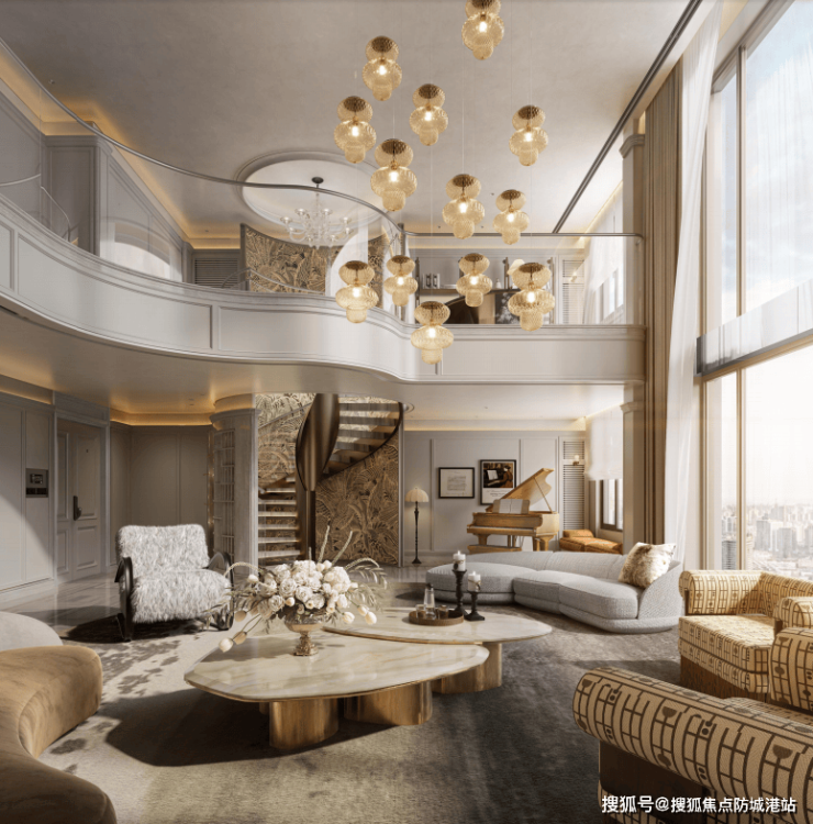 别墅化体验:通过巧妙的空间规划,实现了高层住宅中的别墅化生活场景,如约6.3米挑高客厅、双层全景舱主套等。