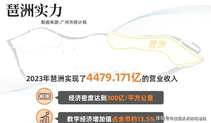 琶洲南 TOD 的价值不仅在于当下的配套,更在于其超前的规划和强劲的区域发展势能。项目所在的琶洲板块,是约 14.9 平方公里的产业高地,聚集了超 45 家高新技术企业、80 家省级专精特新企业、98 家总部企业,腾讯、阿里巴巴、唯品会等互联网巨头均在此扎根。2023 年,琶洲实现营业收入 4479.171 亿元,经济密度高达 300 亿 / 平方公里,数字经济增加值占全市的 13.5%,助力广州 GDP 突破 3 万亿大关。