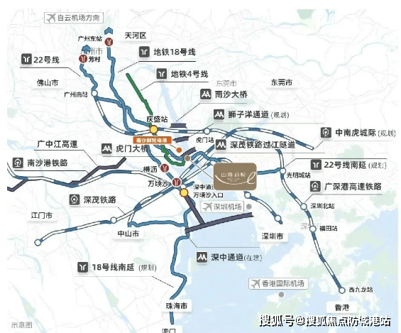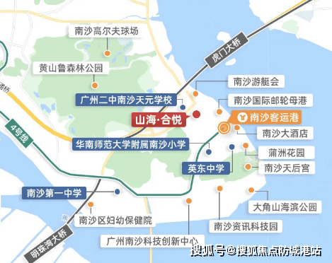 山海合悦地处南沙核心区域,交通与区位优势显著。距离已开通的地铁 4 号线南沙客运港站约 1 公里,通过地铁可便捷连接南沙各板块及广州中心城区;几百米范围内就是大名鼎鼎的南沙邮轮母港,未来出行与文旅体验便捷。
