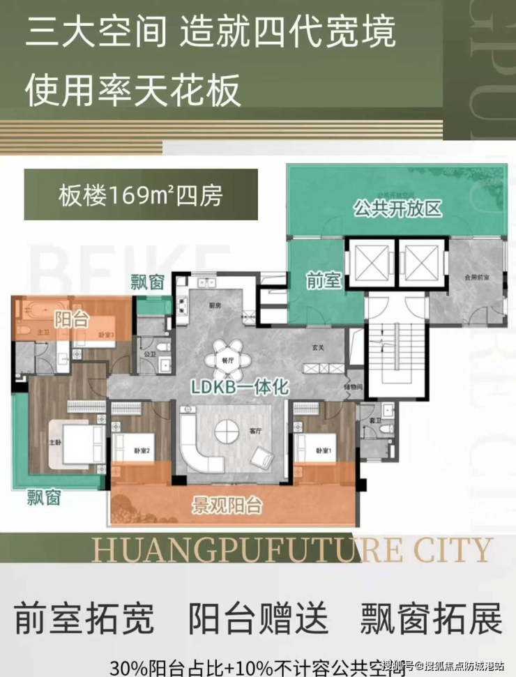 黄埔未来城推出了建面约125-169平方米的四房户型,所有户型均采用了高拓展设计,使用率最高可达约143%。每个户型都配备了空中双花园,实现了层层有庭院、户户有花园的居住形态。特别是其LDKG大方厅的设计理念,使得即使是较小面积的户型也能享受到大平层般的空间感。