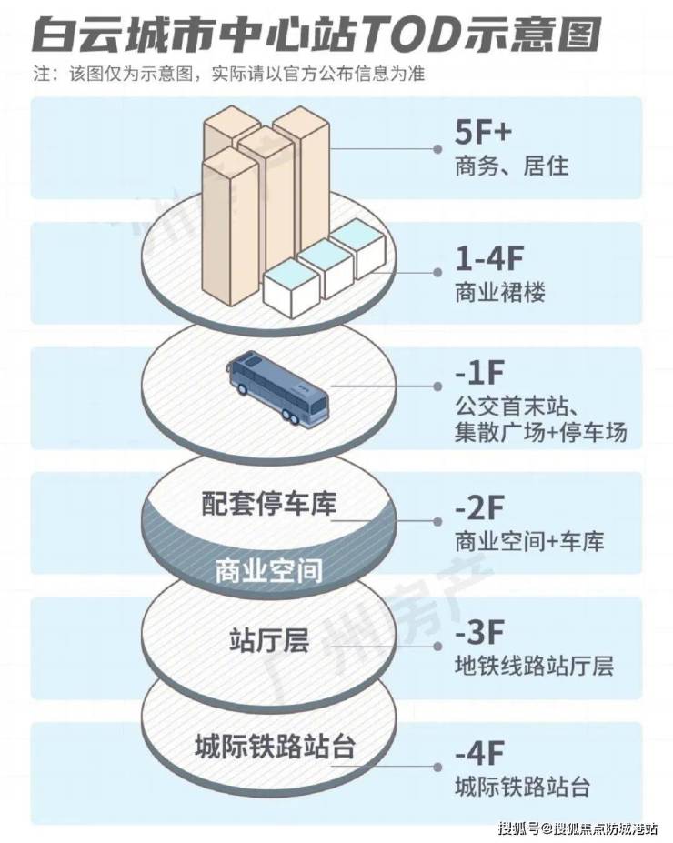 约7万㎡的白云城市中心站场综合体,整个站场以垂直立体式的TOD模式打造,涵盖地下商业空间、停车场、公交车首末站、集散广场,以及多层的商业裙楼。