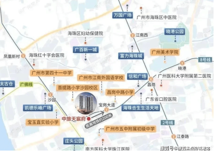 项目距地铁8号线沙园站仅600米,2站直达琶洲、4站到珠江新城;广佛线燕岗站(1.2公里)可换乘3号线、2号线。自驾10分钟可达广州塔,15分钟通达天河城。据交通部门数据,项目周边日均客流量超20万人次,规划新增3个公交首末站,形成立体交通网络。