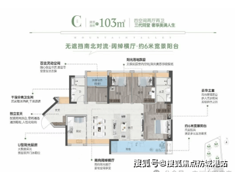 天地源伴山溪谷提供了多种户型选择,面积从85平方米到103平方米不等,涵盖三房两厅两卫和四房两厅两卫等多种配置。每个户型都经过精心设计,注重实用性和舒适性。例如,85平方米的三房两厅两卫户型南向带主套设计,生活更加随心;超5米宽的大阳台,视野开阔,赠送空间丰富,使用率约90%。U型大厨房布局合理,洗/切/煮/炒动线流畅,主卧落地凸窗设计,采光充足。而103平方米的四房两厅两卫户型则南北通透,超6米宽MAX宽景阳台,提供更好的通风和采光效果。