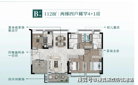 项目主打 89-112㎡全南向户型,均采用 “+1 房” 创新设计,在有限面积内实现居住功能最大化。89㎡3+1 房户型为市场稀缺的四房配置,做到四开间朝南,客厅及三间卧室均能获得充足采光,主卧为套房设计并配备独立卫浴,入户花园可改造为书房或儿童房,满足多人口家庭需求。实测数据显示,该户型客厅面宽达 3.6 米,比同面积段竞品多出 0.3-0.5 米,空间通透感显著提升。