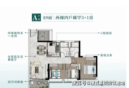 户型设计亮点:全南向高赠空间力作