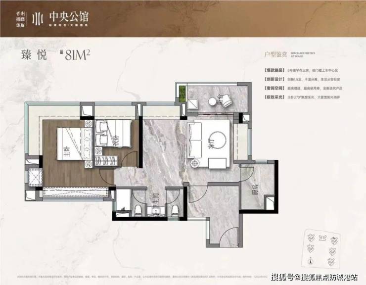 各户型普遍采用高得房率设计 居住舒适性明显提升 例如81㎡户型得房率高达105 主卧南北通透 客厅带有飘窗设计 强化通风采光 同时提升使用空间的多功能性