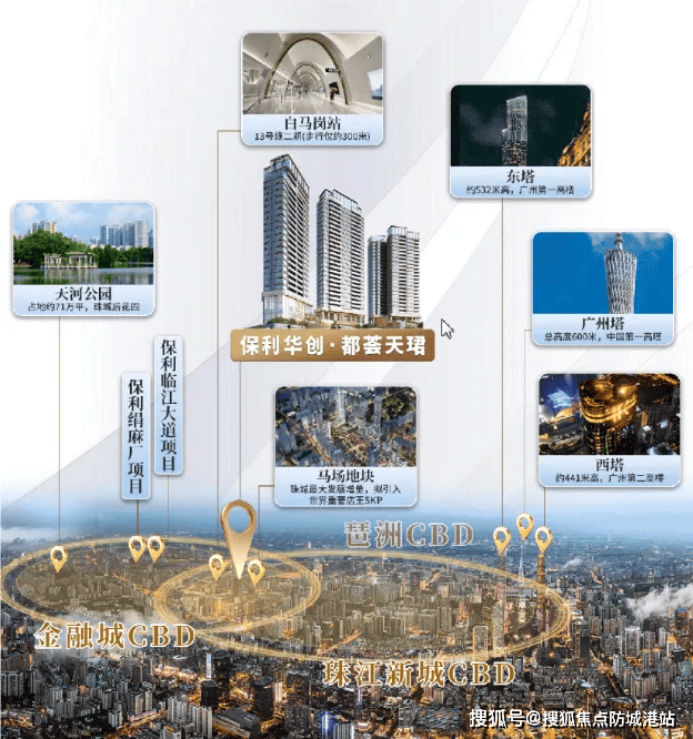 保利华创都荟天珺落子于珠江新城东马场板块——被业内誉为“广州CBD最后的价值高地”。项目地处珠江新城、金融城、琶洲三大国家级中央商务区构成的“黄金三角”核心枢纽,驾车10分钟内即可通达任意一个CBD核心区,高效承接高端产业人群的居住与资产配置需求。