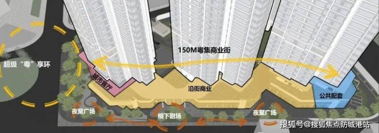 社区内部配套围绕“全龄友好”展开。每栋楼三层架空层被划分为八大主题泛会所:儿童有攀爬墙和绘本角,年轻人能用共享健身区和静音自习室,老人则可在棋牌区或园艺角消磨下午时光。中央区域整合了1000㎡商业、城市会客厅与保留的榕树林,未来业主下楼买菜、喝咖啡、遛娃、会友,基本不用出小区。另规划有街角公园和临街商铺,补足最后一公里生活需求。